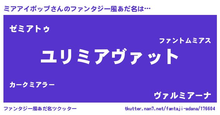 | ヒーロー風カッコイイあだ名 | 『ウルトラ戦士ミアアイポップ』 |