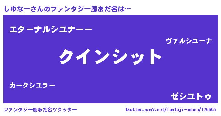 | 女子向けラノベタイトル風あだ名 | 『しゆなー恋絵巻』『しゆなー伯爵の花嫁』 |