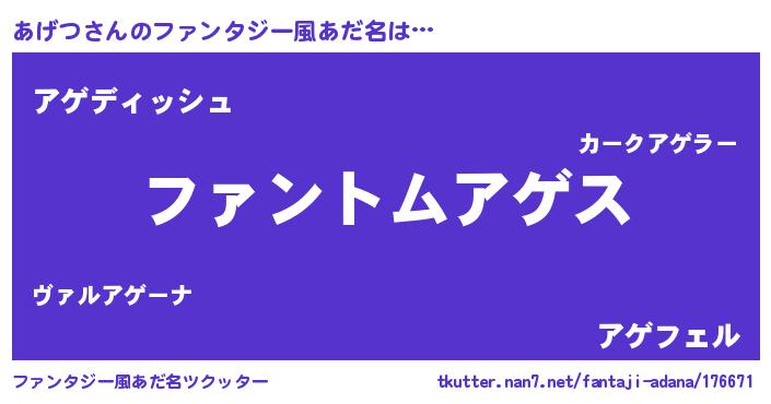 | 胡散臭い通販商品みたいなあだ名 | 『信頼と実績のペンダント…その名も「あげつ」』 |