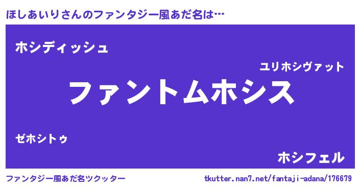 | 胡散臭い通販商品みたいなあだ名 | 『信頼と実績のペンダント…その名も「ほしあいり」』 |