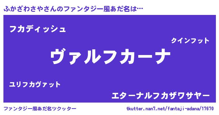| ポケモン風あだ名 | 『フーカイ』『ゼニフカ』 |