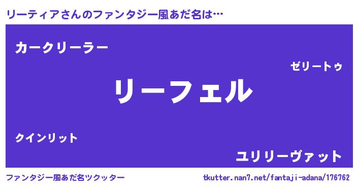 | 自動車の名前っぽいあだ名 | 『リーティマ』『フェリーー』『リンR』 |