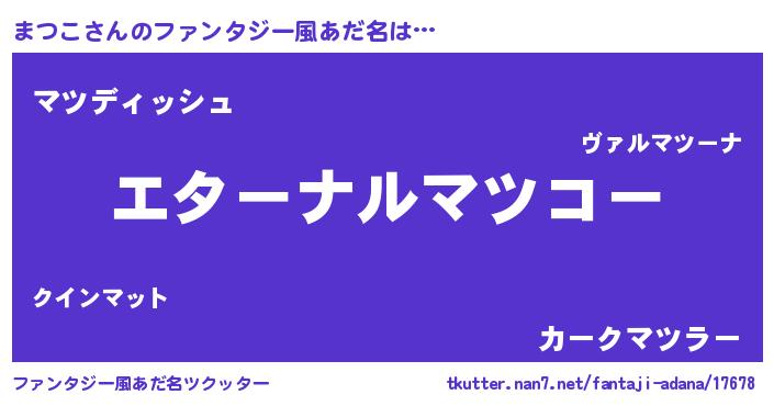 | 意味不明あだ名 | 『まつこフォーエバー』『永久保存まつこ』 |
