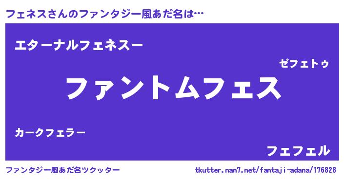 | 男性向けラノベタイトル風あだ名 | 『フェネスの嫁は女の子じゃないと思った?』 |