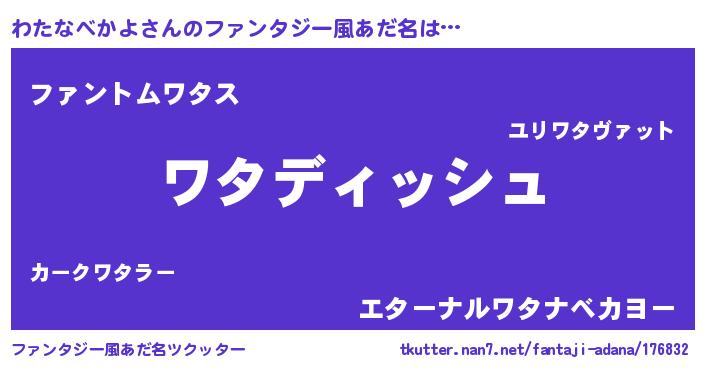 | ヒーロー風カッコイイあだ名 | 『ネオワタナベカヨ』『魔戒騎士ワタ』 |