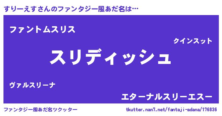 | 胡散臭い通販商品みたいなあだ名 | 『前代未聞の健康食品…その名も「すりーえす」』 |