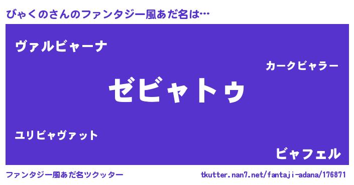 | ヒーロー風カッコイイあだ名 | 『サイバー戦士ビャクノ』『仮面ビャダー』 |