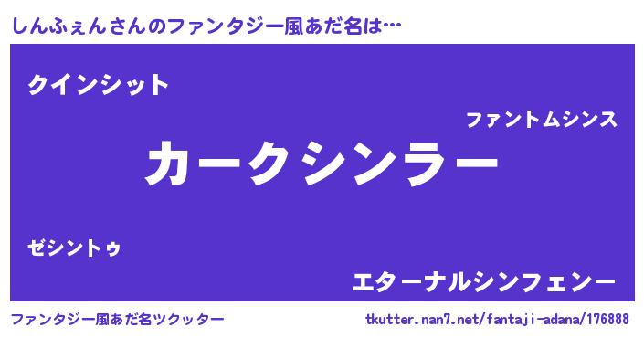 | 男性向けラノベタイトル風あだ名 | 『しんふぇんに滅ぼされるだけの簡単なお仕事です』 |