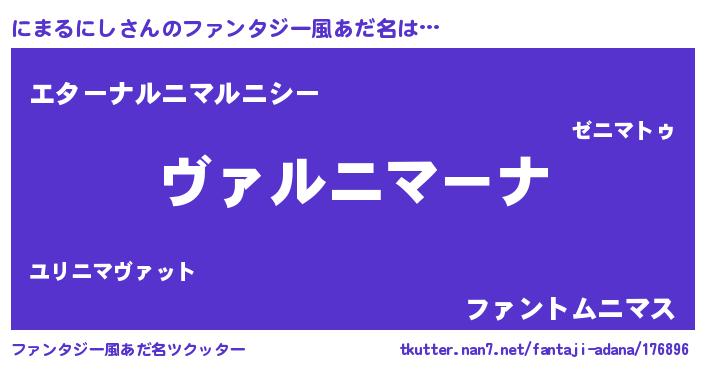 | 男性向けラノベタイトル風あだ名 | 『この素晴らしい世界ににまるにしを!』 |