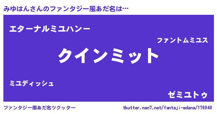 | ポケモン風あだ名 | 『ミックウザ』『ミユハダネ』 |