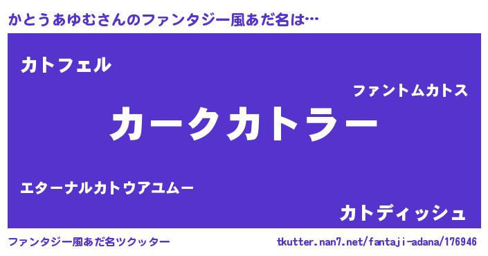| ヘコむあだ名 | 『かとにー』『かとうあゆむ(震え声)』 |