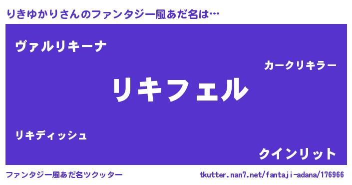 | 女子向けラノベタイトル風あだ名 | 『(仮)りきゆかりのやんごとなき事情』 |