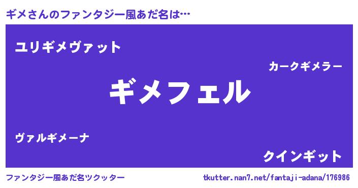 | 男性向けラノベタイトル風あだ名 | 『ギメの憂鬱』『はたらくギメさま!』 |