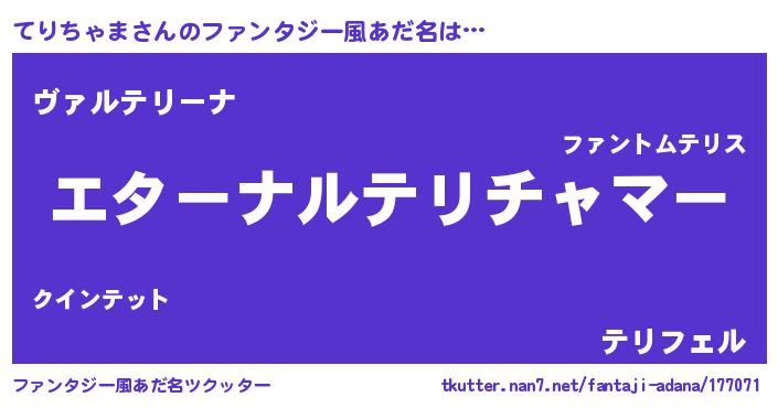 | 意味不明あだ名 | 『てりちゃまフォーエバー』 |
