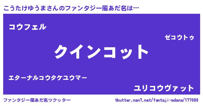 | 男性向けラノベタイトル風あだ名 | 『ノーゲーム・ノーコウタケユウマ』 |