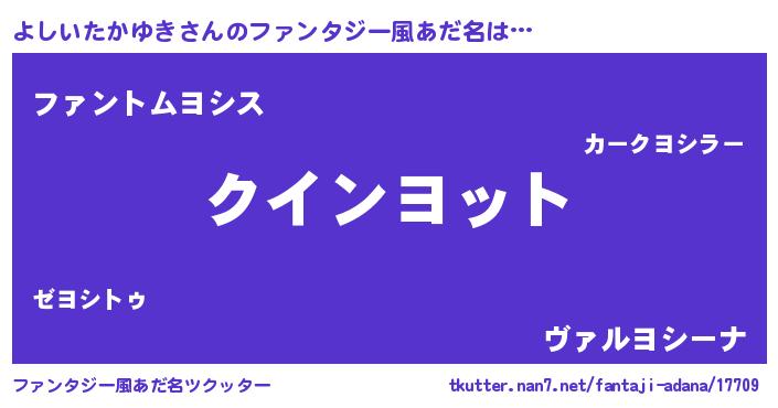 | 男性向けラノベタイトル風あだ名 | 『ノーゲーム・ノーヨシイタカユキ』 |