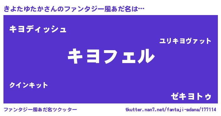 | 男性向けラノベタイトル風あだ名 | 『キヨタユタカアートオンライン』 |