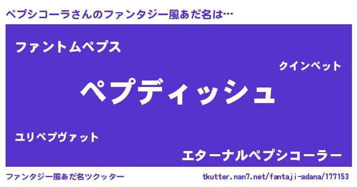 | ポケモン風あだ名 | 『ゼニペプ』『ヒペプシコーラ』 |