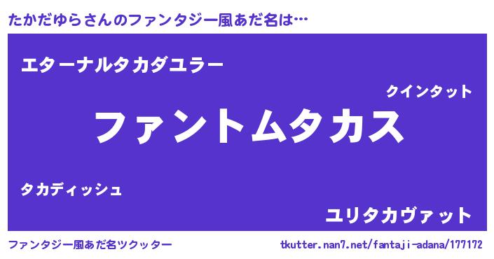 | 男性向けラノベタイトル風あだ名 | 『たかだゆらに滅ぼされるだけの簡単なお仕事です』 |