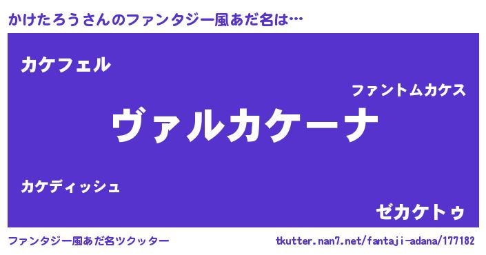 | 男性向けラノベタイトル風あだ名 | 『この素晴らしい世界にかけたろうを!』 |