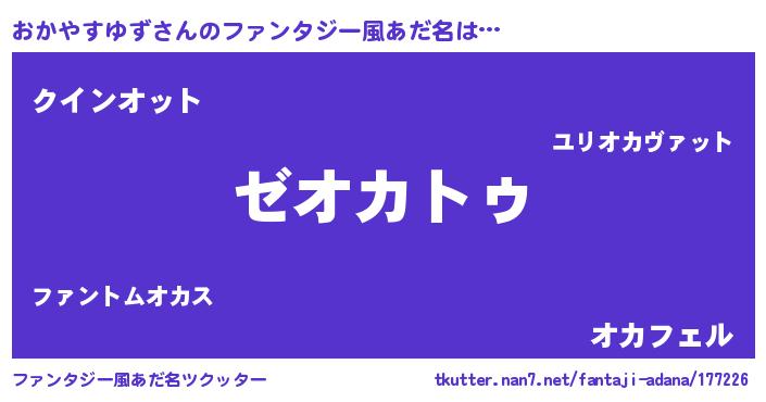 | 男性向けラノベタイトル風あだ名 | 『Re:おかやすゆずから始める異世界生活』 |