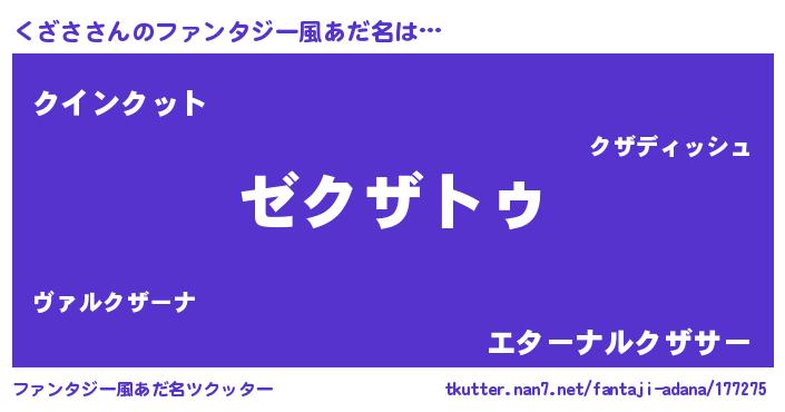 | 男性向けラノベタイトル風あだ名 | 『Re:くざさから始める異世界生活』 |