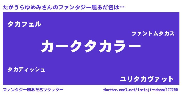 | 胡散臭い通販商品みたいなあだ名 | 『必ず成功するブレスレット…その名も「たかうらゆめみ」』 |