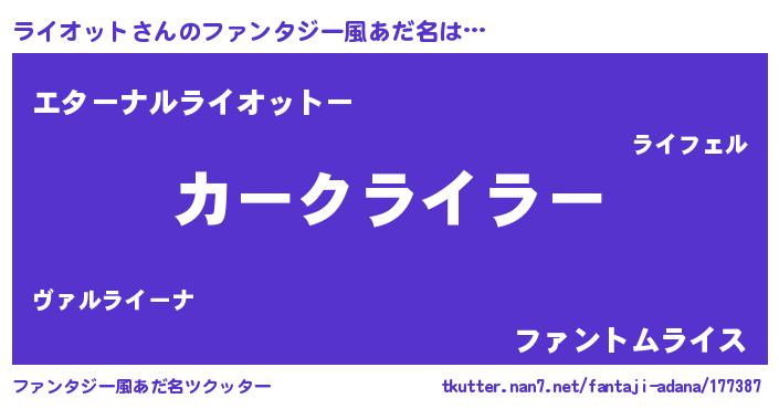 | 自動車の名前っぽいあだ名 | 『フェラーイ』『ラクア』『ラント』 |