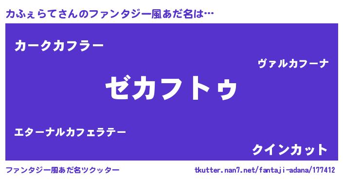 | 意味不明あだ名 | 『自称カふぇらて』『ペロリンカふぇらて』 |