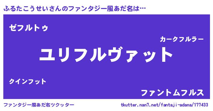 | 男性向けラノベタイトル風あだ名 | 『ふるたこうせい~年齢イコール彼女いない歴の魔法使い~』 |