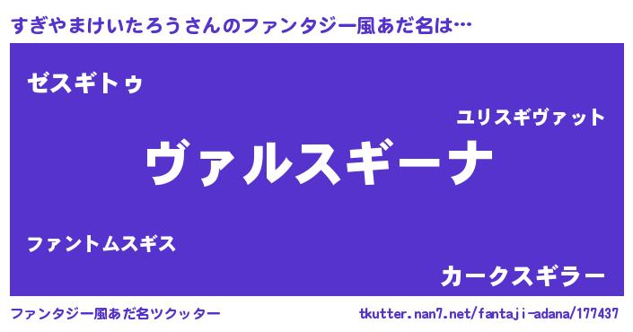 | 男性向けラノベタイトル風あだ名 | 『魔弾の王とすぎやまけいたろう』 |
