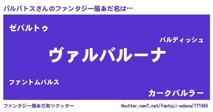 | 意味不明あだ名 | 『住所不定無職バルバトス(47歳)』 |