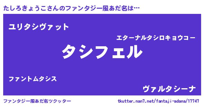 | 女子向けラノベタイトル風あだ名 | 『たしろきょうこ姫と円卓の騎士』 |