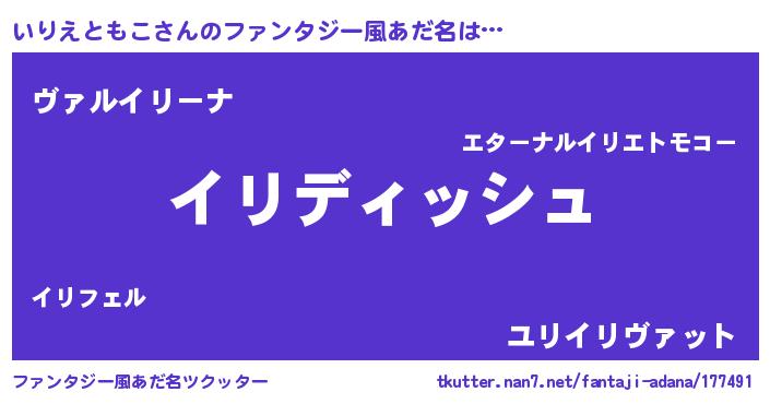 | ポケモン風あだ名 | 『イリゴンZ』『ゼニイリ』『イーリイ』 |