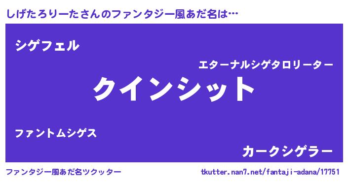 | 伝説のあだ名 | 『人々から恐れられる錬金術士しげたろりーた』 |