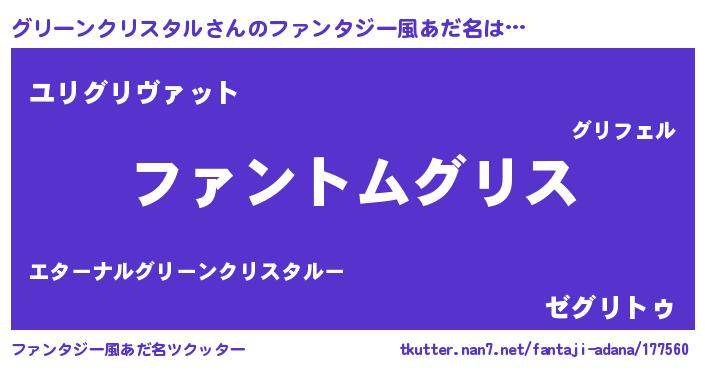 | 男性向けラノベタイトル風あだ名 | 『グリーンクリスタルの嫁は女の子じゃないと思った?』 |