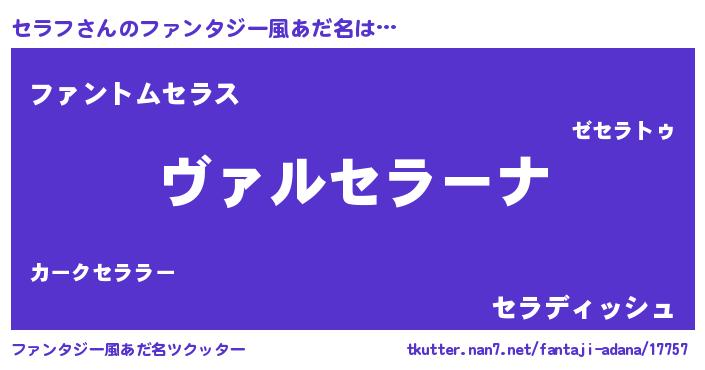 | ヒーロー風カッコイイあだ名 | 『仮面セラダー』『幻影騎士セラ』 |