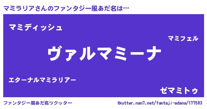 | ポケモン風あだ名 | 『マーミイ』『ゼニマミ』 |