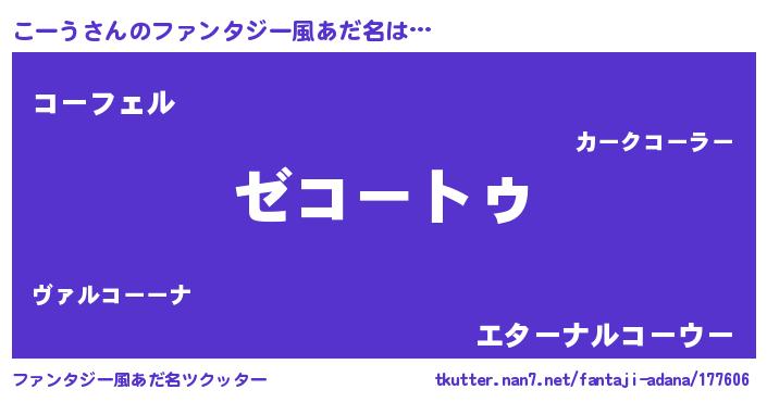 | 男性向けラノベタイトル風あだ名 | 『Re:こーうから始める異世界生活』 |