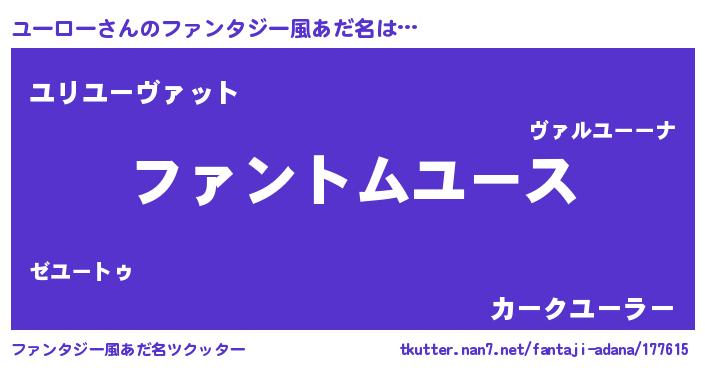 | 男性向けラノベタイトル風あだ名 | 『ユーローの嫁は女の子じゃないと思った?』 |