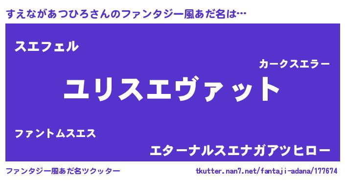 | 男性向けラノベタイトル風あだ名 | 『すえながあつひろ~年齢イコール彼女いない歴の魔法使い~』 |