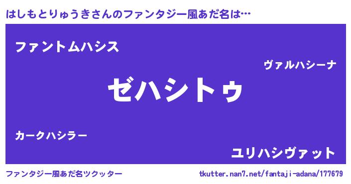 | 男性向けラノベタイトル風あだ名 | 『はたらくはしもとりゅうきさま!』 |