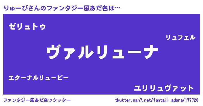 | 男性向けラノベタイトル風あだ名 | 『この素晴らしい世界にりゅーびを!』 |