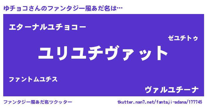| 女子向けラノベタイトル風あだ名 | 『ゆチョコの玉の輿計画!』 |