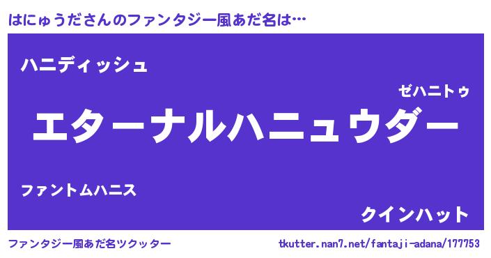 | ポケモン風あだ名 | 『ハニュダネ』『ゼニハニ』 |