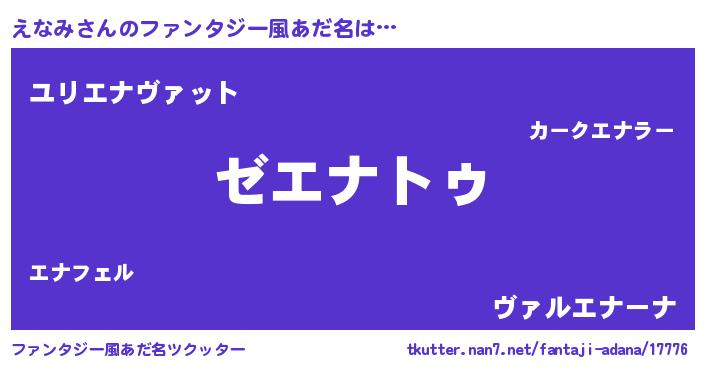 | 意味不明あだ名 | 『自称えなみ』『なめこ科えなみ属』 |