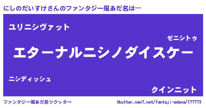 | 意味不明あだ名 | 『にしのだいすけフォーエバー』 |
