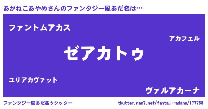 | 意味不明あだ名 | 『自称あかねこあやめ』 |