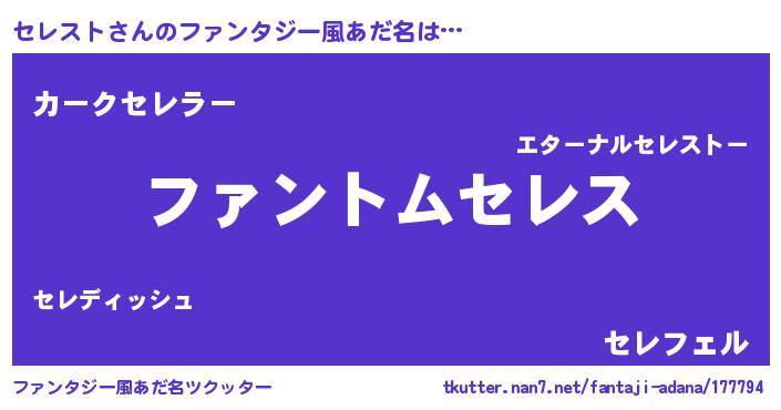 | 意味不明あだ名 | 『とにかく怪しいセレスト』 |