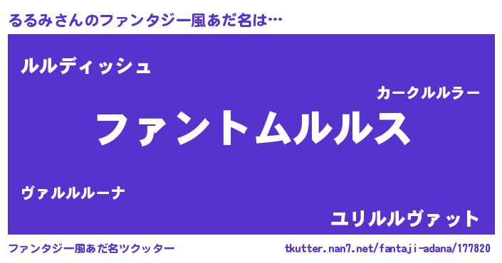 | ポケモン風あだ名 | 『ヒルルミ』『ゼニルル』『ルルゴンZ』 |